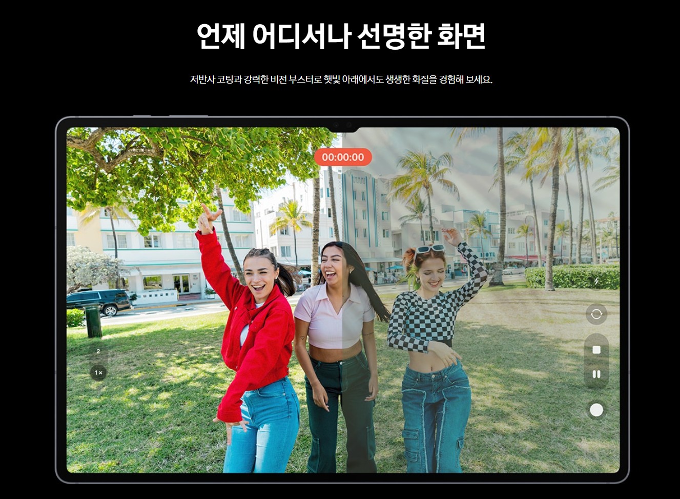 - 아이패드 프로 M4 13인치: 12MP 광각 카메라와 LiDAR 스캐너를 탑재하여 AR(증강현실) 앱 활용에 강점을 보입니다. 사진 품질은 준수하지만, 후면 카메라의 활용성은 갤럭시 탭 시리즈 대비 제한적입니다.