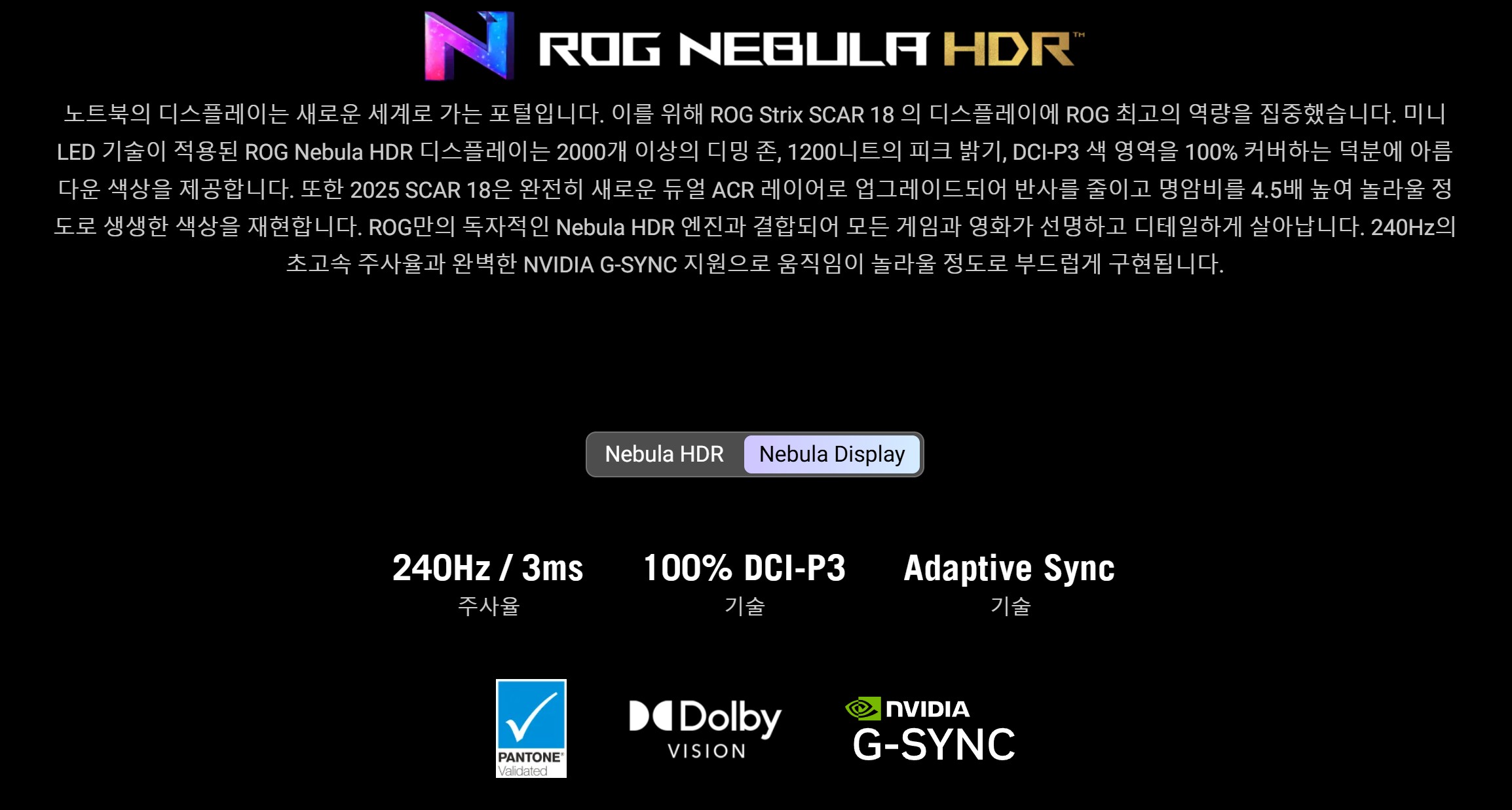 ROG 스트릭스 2025 모델들은 미니 LED 기반 네뷸라(Nebula) 디스플레이를 탑재했습니다.