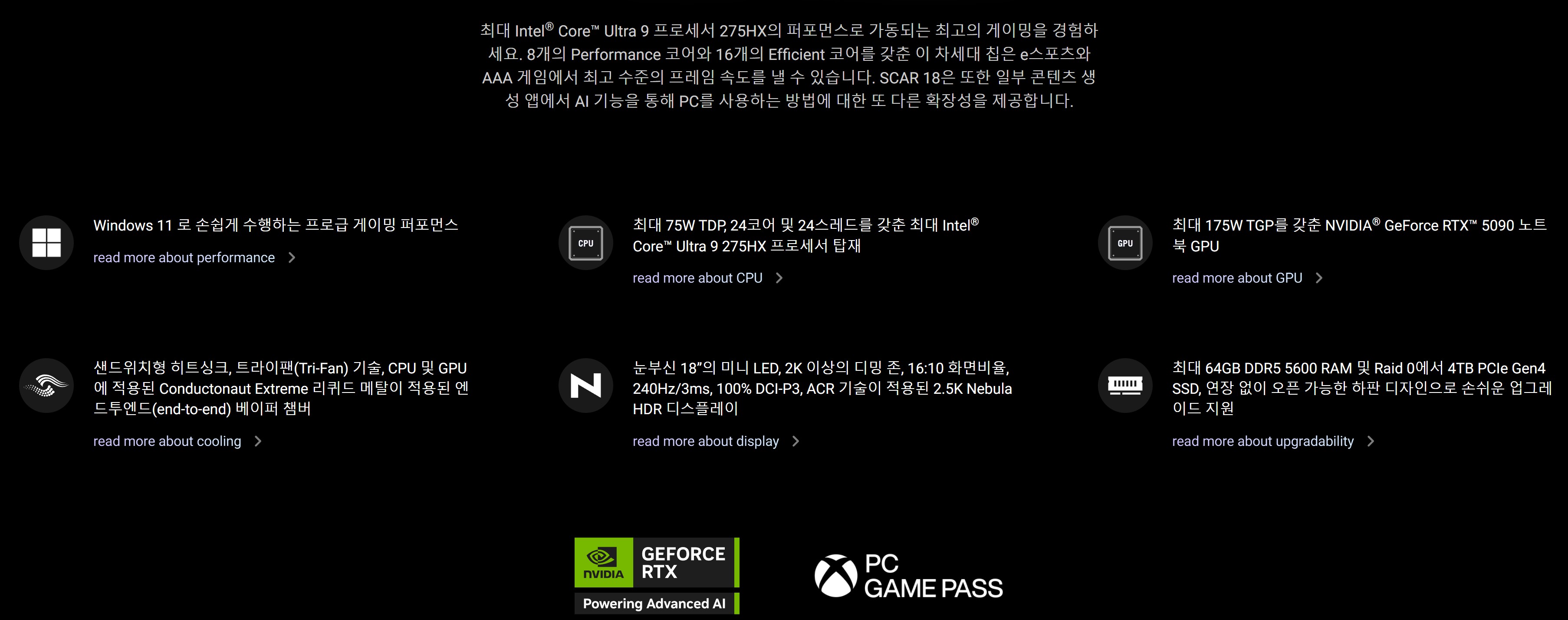 - 최고의 성능을 원한다면? → ROG 스트릭스 스카 16/18 추천