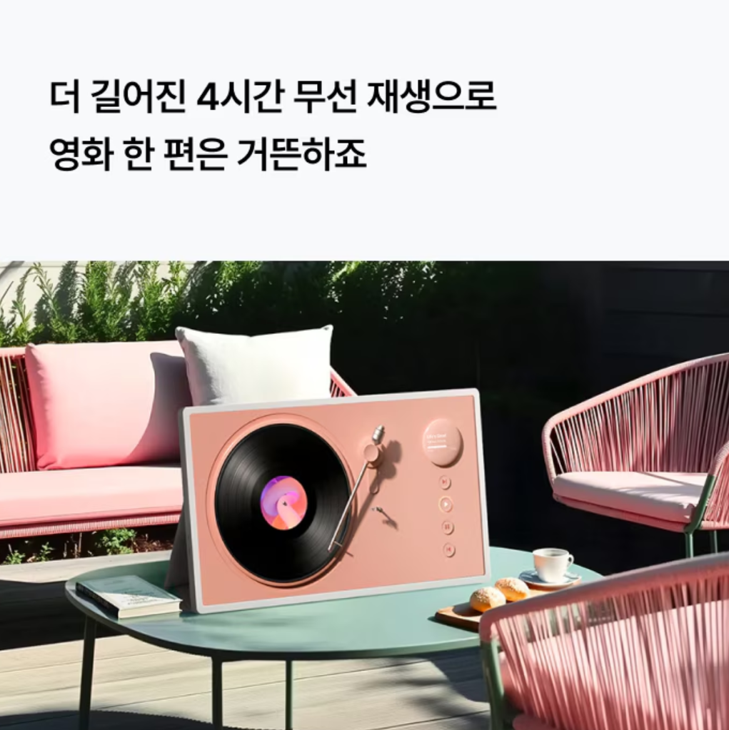 이러한 기능 덕분에 전원이 없는 캠핑장에서도 충분히 사용할 수 있으며, 차박이나 피크닉에서도 전원 걱정 없이 콘텐츠를 즐길 수 있습니다.